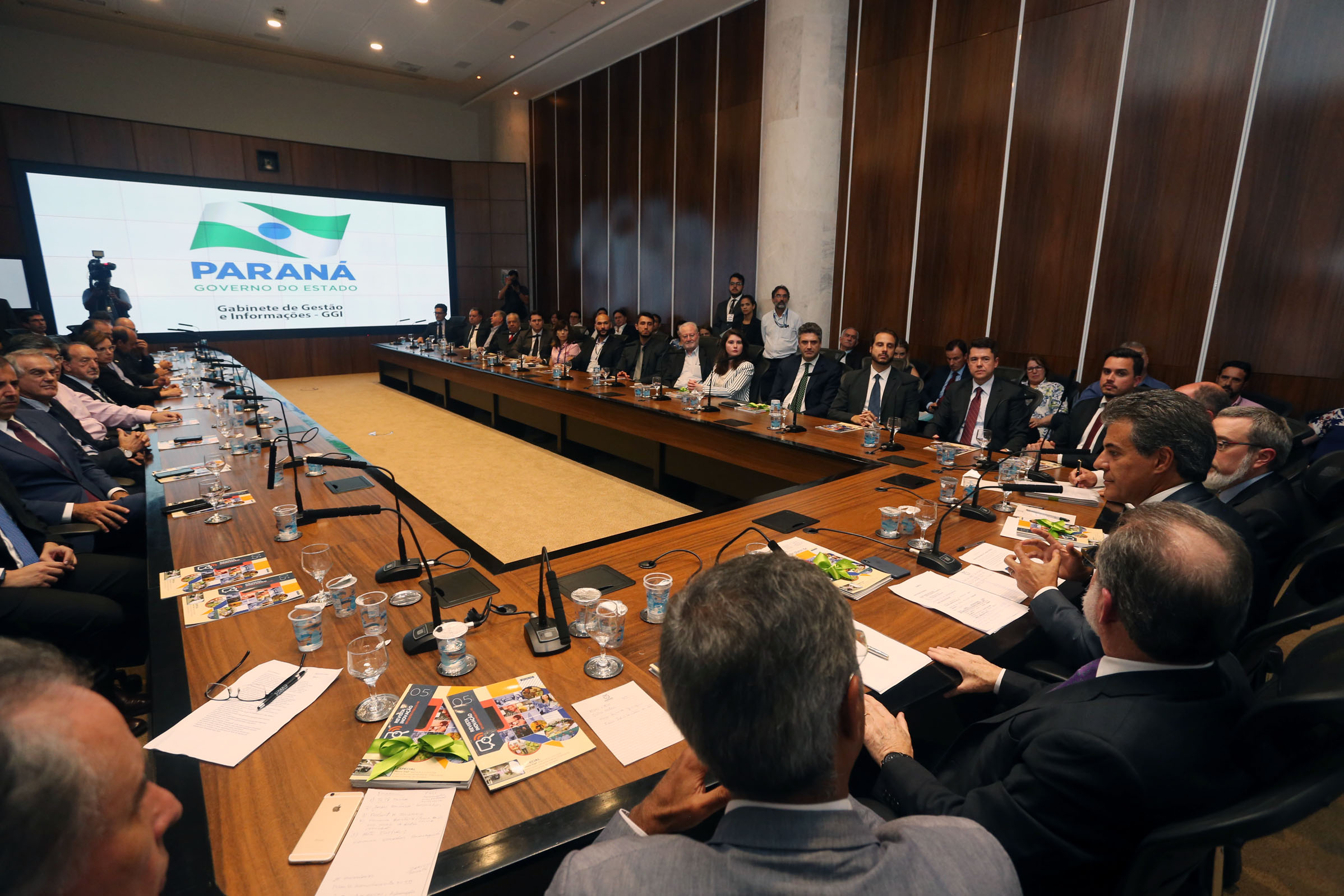 PRESENÇAS - Participaram da solenidade o secretário de Estado de Assuntos Estratégicos, Edgar Bueno, da Administração e Previdência, Fernando Ghignone; o diretor-presidente da Ferroeste, João Vicente Bresolin; presidente da Copel, Antônio Guetter e o diretor-presidente da Celepar, Jacson Leite.