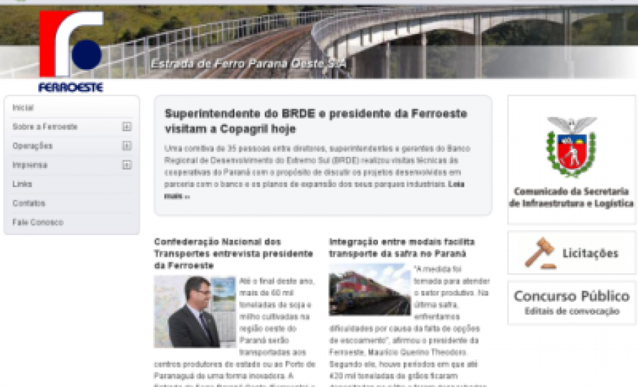 Novo site da Ferroeste está no ar 16/09/2011 - 17:00